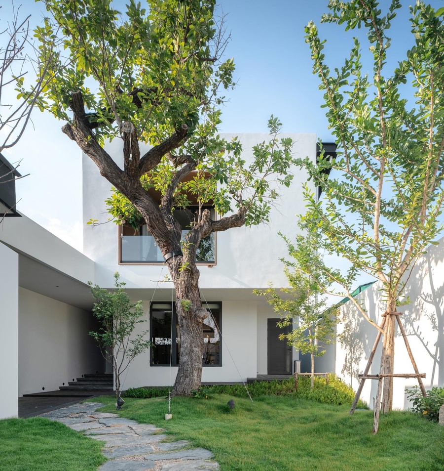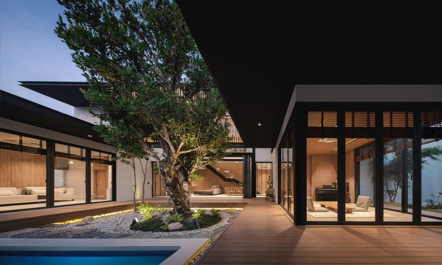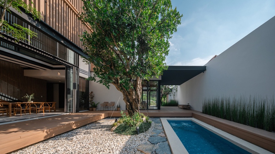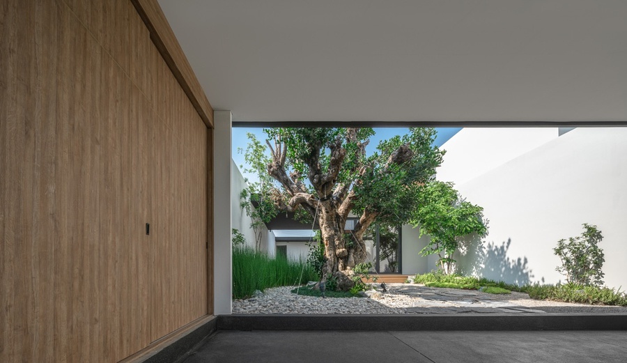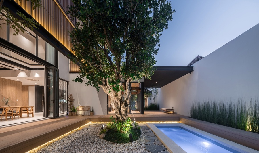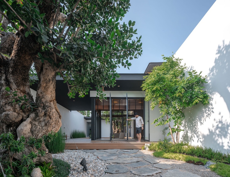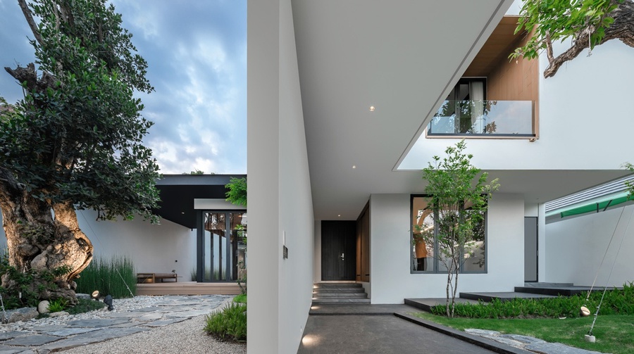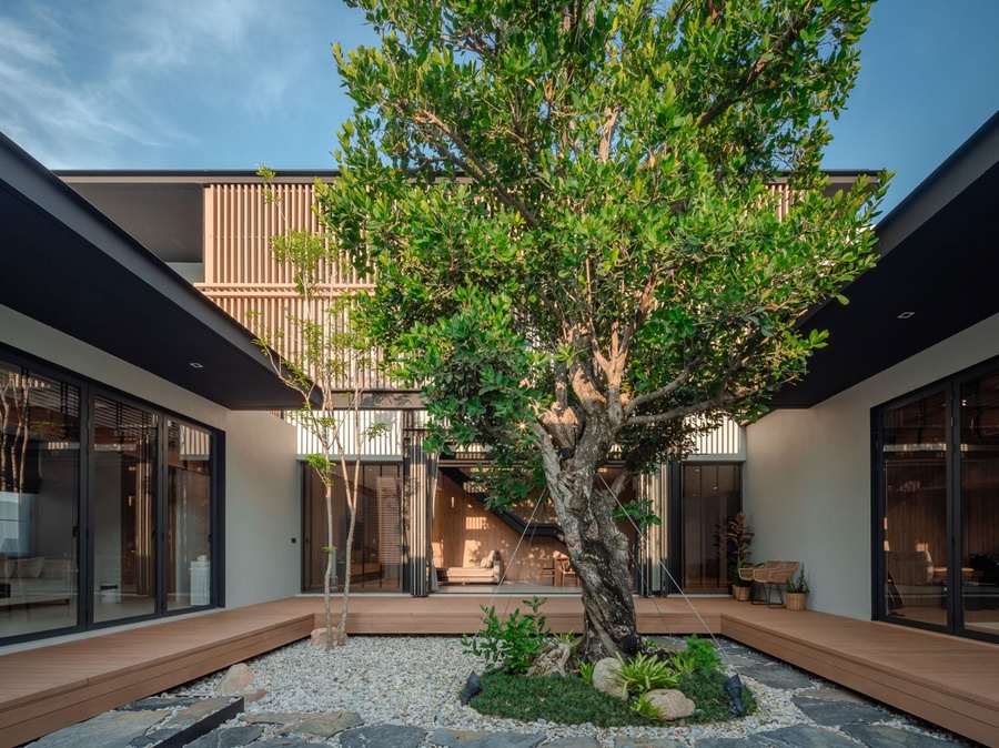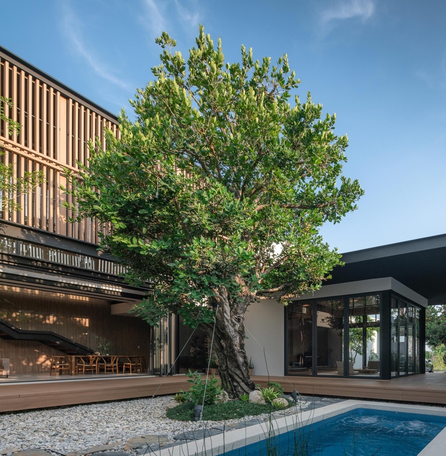 Mang thiên nhiên vào chính ngôi nhà hiện đại bằng cách khéo léo đặt một cây cổ thụ lớn ở giữa sân vườn.
