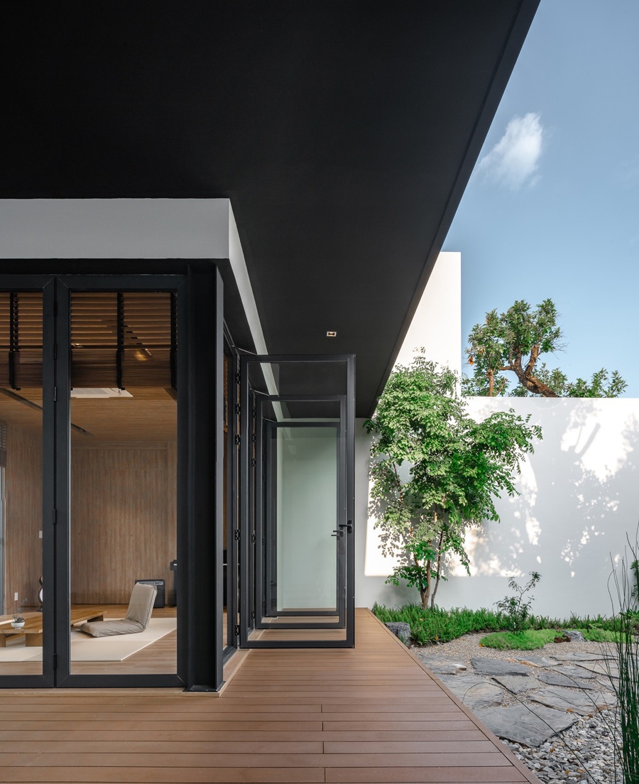 Thiết kế cửa độc đáo cho thấy sự tiếp giáp với các khu vực trong nhà và không gian ngoài trời tạo ra một dòng chảy hài hòa cho tổng thể.