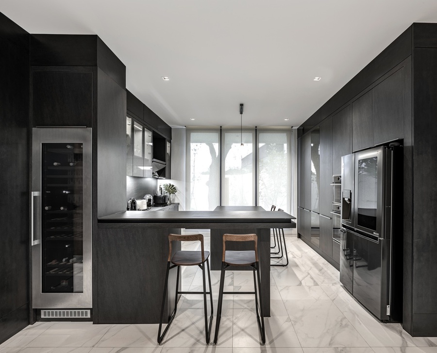 Cửa sổ và cửa ra vào được thiết kế khung màu đen trông sắc nét và mạnh mẽ khi có ánh sáng tự nhiên chiếu vào.