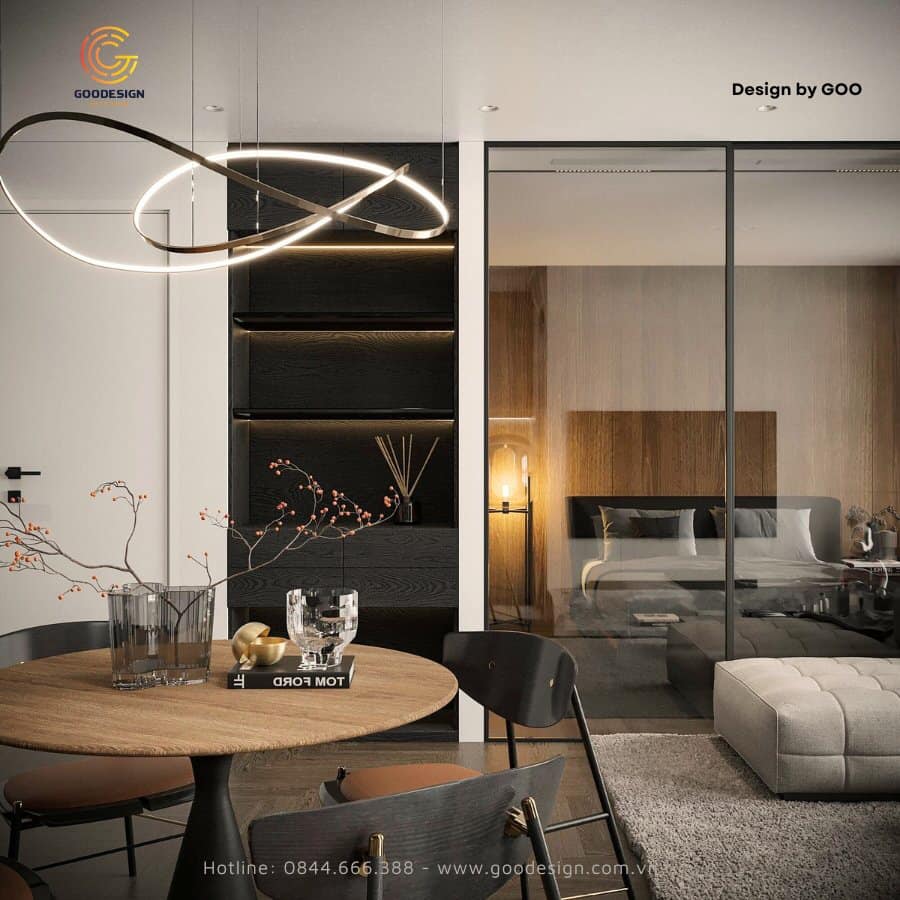 2. Mẫu thiết kế căn hộ chung cư 1 phòng ngủ theo phong cách hiện đại
