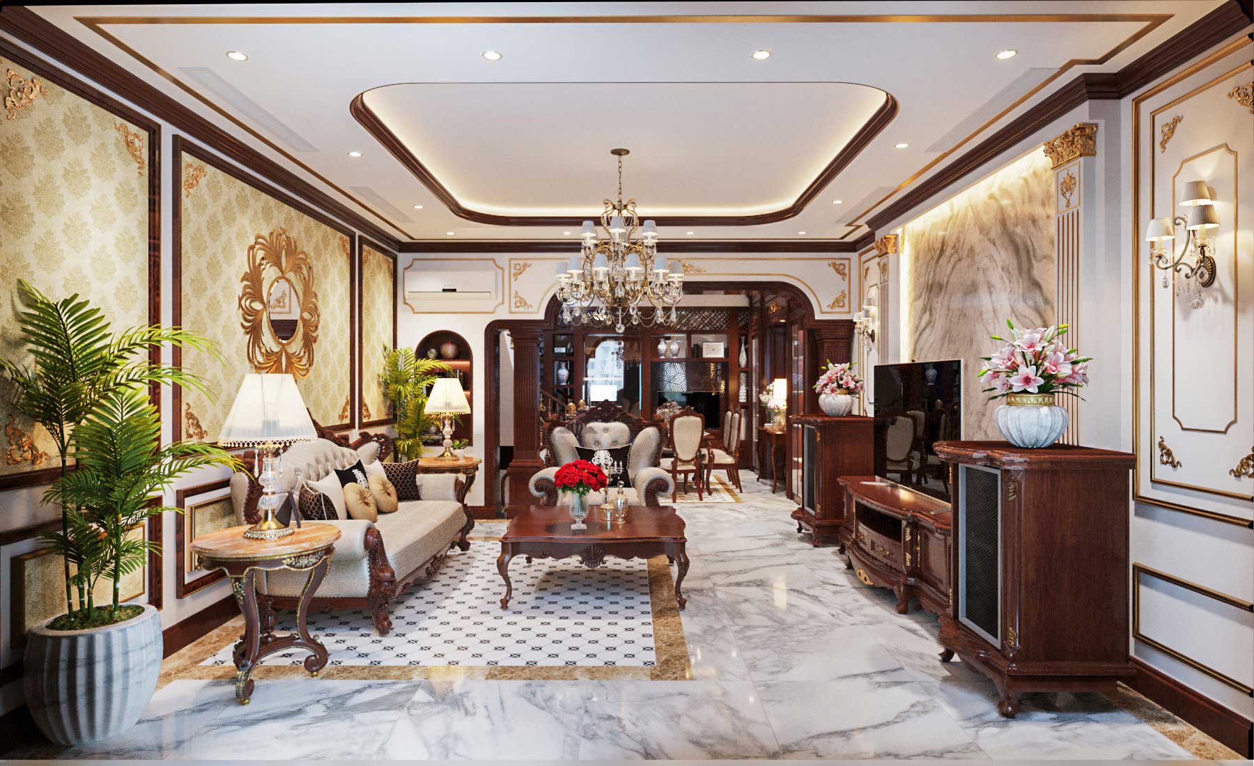 3. Mẫu thiết kế căn hộ chung cư 1 phòng ngủ theo phong cách tân cổ điển